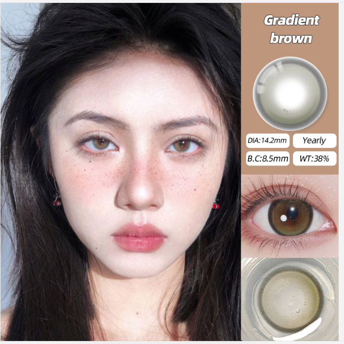 Gradient Brown Yearly Contact Lenses | DIA 14.2mm | BC 8.5mm | WT 38% | OEM Custom Packaging for Wholesale